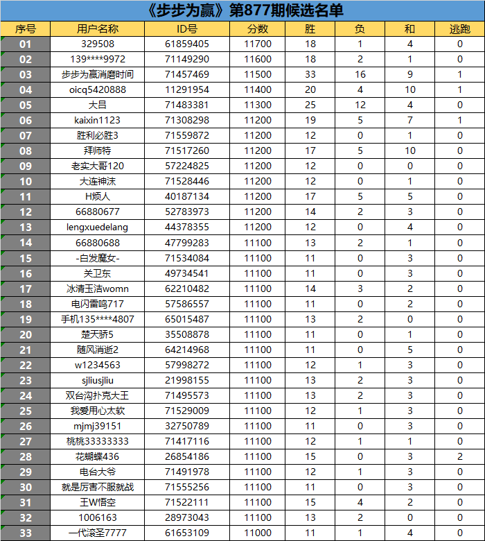 《步步为赢》第877期候选名单公布