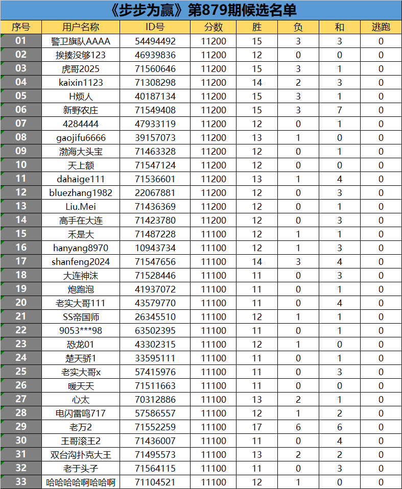 《步步为赢》第879期候选名单公布