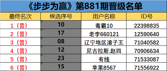 《步步为赢》第881期晋级名单公布