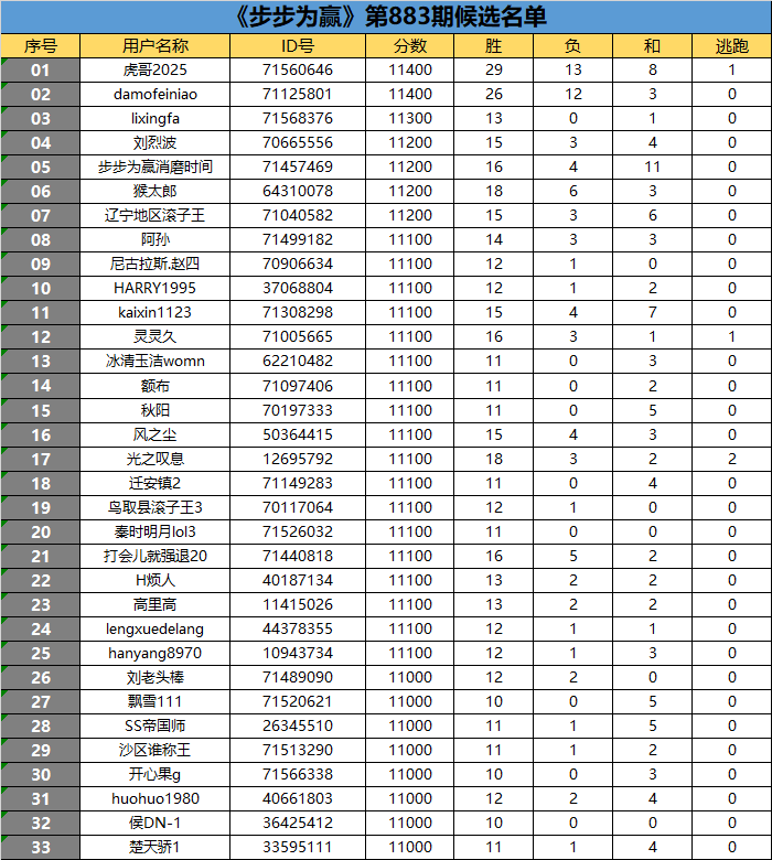 《步步为赢》第883期候选名单公布