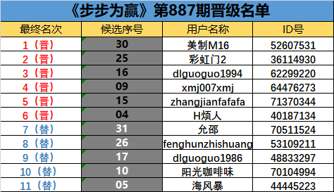 根据2025年5月22日中国福利彩票“双色球”玩法第25057奖结果,《步步为赢》第887晋级名单已经产生。