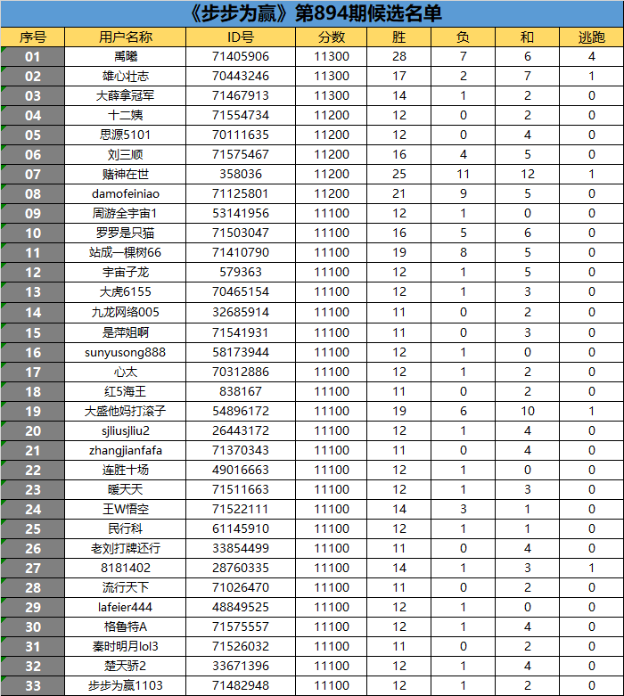 《步步为赢》第894期候选名单公布