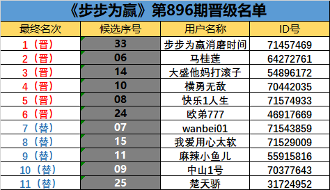 《步步为赢》第896期晋级名单公布