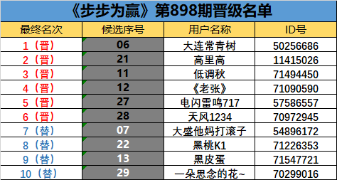根据2025年8月7日中国福利彩票“双色球”玩法第25090奖结果,《步步为赢》第898晋级名单已经产生。