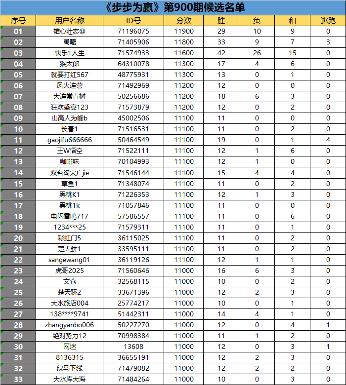 经过一周的激烈角逐,《步步为赢》第900期网络海选的33名候选选手已经揭晓。