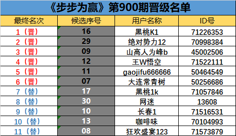 《步步为赢》第900期晋级名单公布