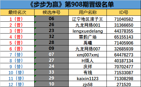 《步步为赢》第908期晋级名单公布