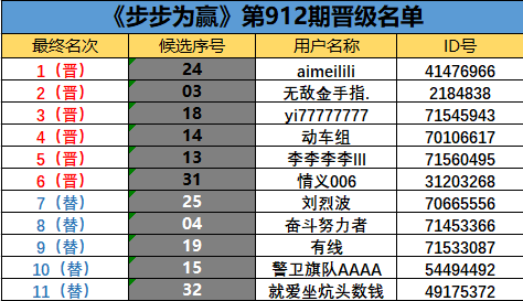 根据2025年11月13日中国福利彩票“双色球”玩法第25131奖结果,《步步为赢》第912期晋级名单已经产生。