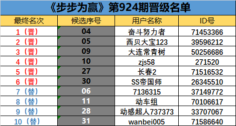 根据2026年2月5日中国福利彩票“双色球”玩法第26016奖结果,《步步为赢》第924期晋级名单已经产生。