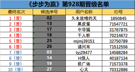 根据2026年3月12日中国福利彩票“双色球”玩法第26027奖结果,《步步为赢》第928期晋级名单已经产生。