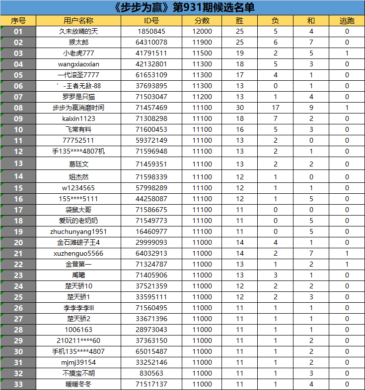 经过一周的激烈角逐,《步步为赢》第931期网络海选的33名候选选手已经揭晓。