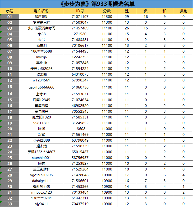 经过一周的激烈角逐,《步步为赢》第933期网络海选的33名候选选手已经揭晓。
